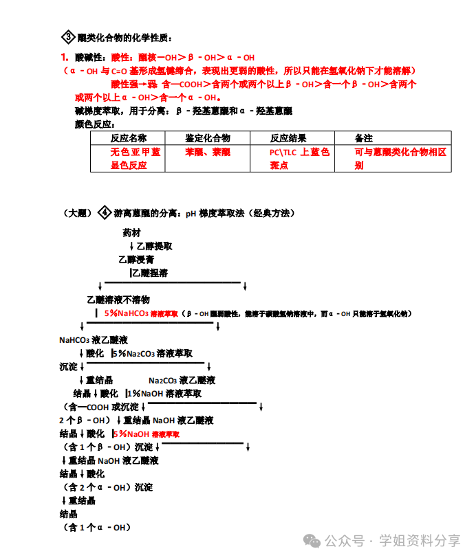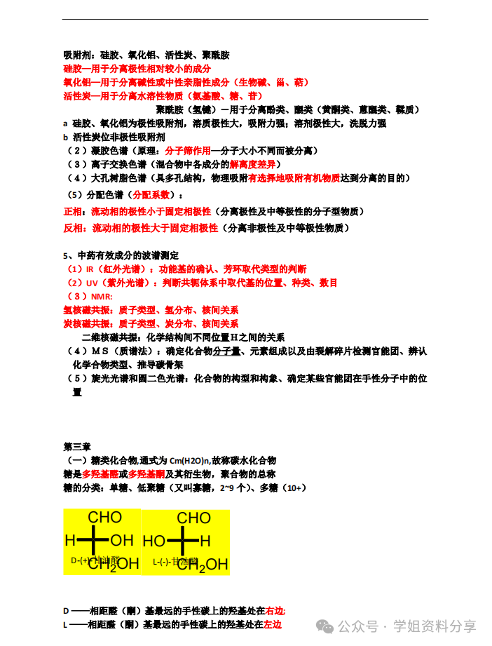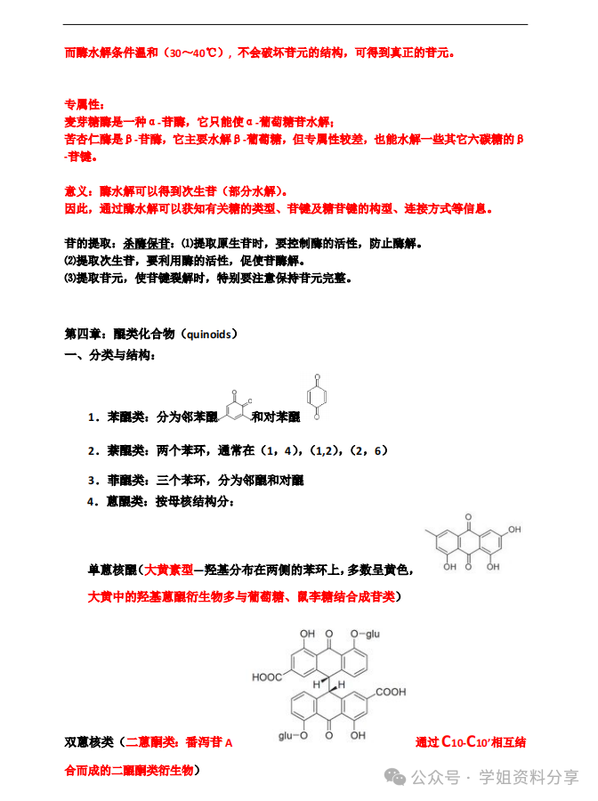 好了,最后学姐再简单分享下中药化学这门课的一些主要考点。