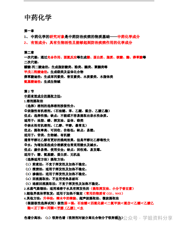 学姐今天要分享的就是中药化学这门课程,这门课的主要资料包括了重点知识点整理+笔记总结+试题题库答案解析+名词解释+思维导图+电子版pdf。