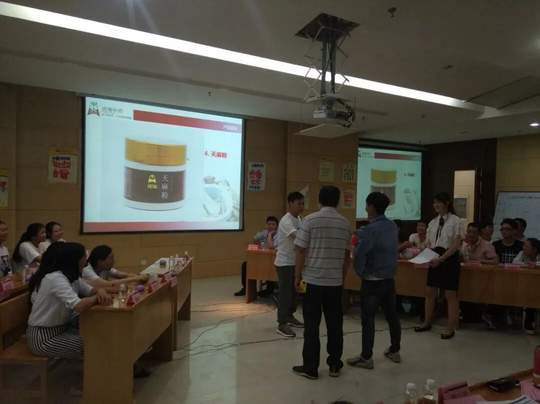 第四轮是挑战题,题型分为公司产品鉴别和中草药鉴别。产品鉴别为鸿翔中药销售前20名的明星产品,队伍成员采用你比我猜的形式来给出正确答案。参赛选手使出浑身解数,有的人用一个食指弯钩的动作猜出天麻粉,有的人说前天我们在车间包装的产品,叮咚----金银花,这类产品滋阴肝肾,益精明目----枸杞子。在产品面前,大家都是生产销售小能手。