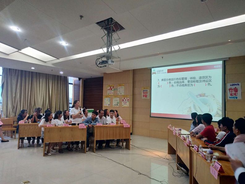 本次竞赛的内容为GMP基础知识、中药基础知识、安全生产法律法规、操作技能等,参赛者由车间物流员工和后台涉及商品、采购、质量以及销售等员工以三人为小组组成的十一支队伍。本次知识竞赛采用现场答题的形式,评选出一、二、三等奖,其中择优选出最具人气团队和最佳答题手。此次竞赛分为必答题、抢答题、风险题和挑战题四大题型。竞赛内容从专业的GMP知识、安全生产法规到鸿翔中药销售TOP20的品类、常见的中草药鉴别,内容丰富多彩,包罗万象。如果没有丰富的知识储备,是很难在参赛者中脱颖而出的。