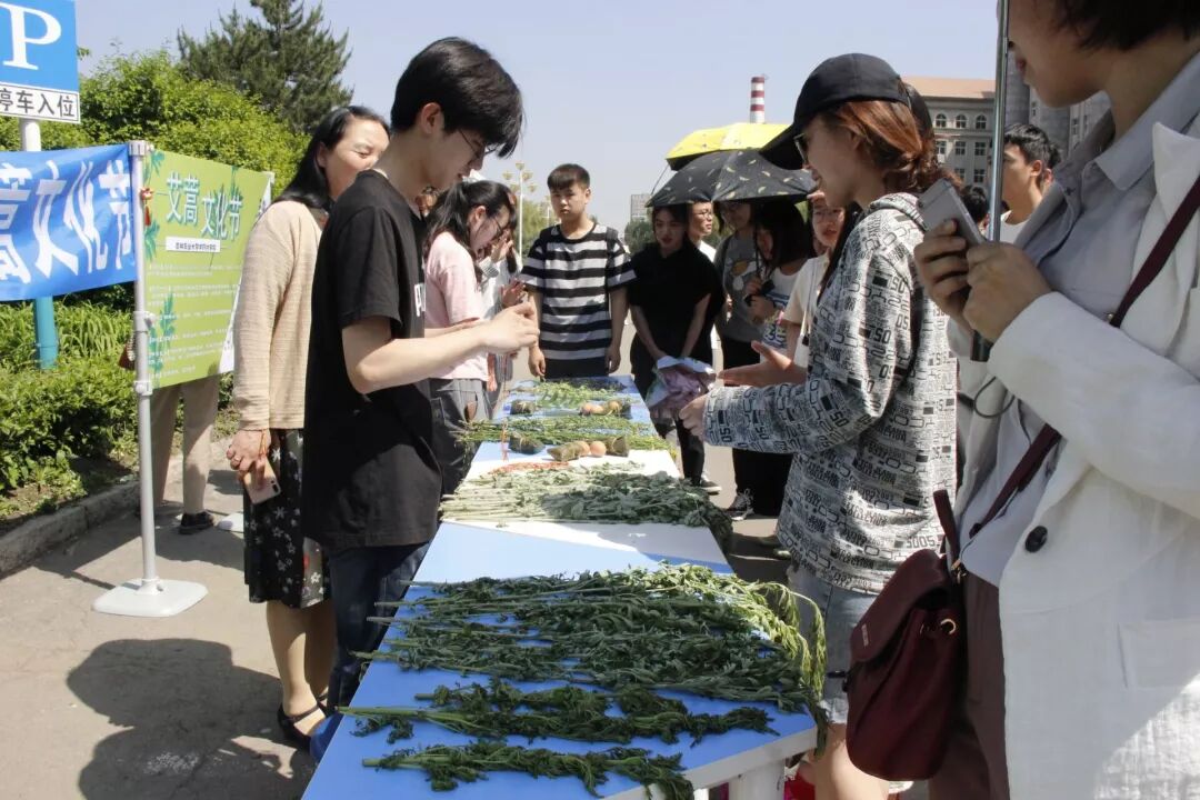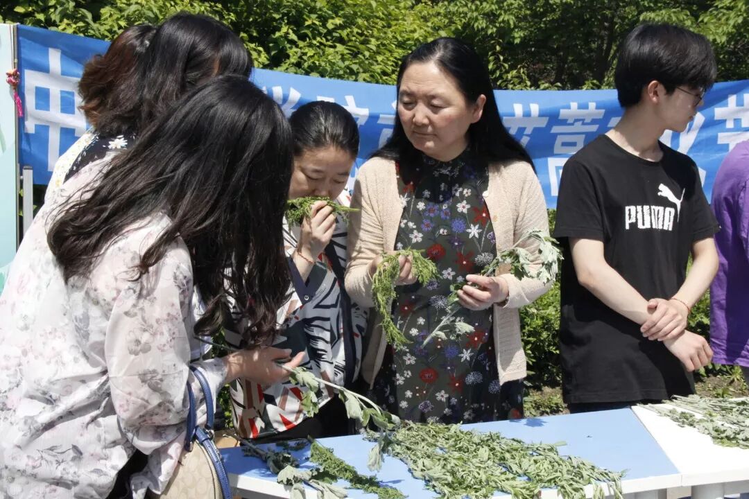 中药材学院党员代表通过展板海报、现场讲解、引导同学现场辨别艾蒿等方式向吉林农业大学的同学普及艾蒿知识,并为同学们送上五色绳、粽子等精美小礼品。