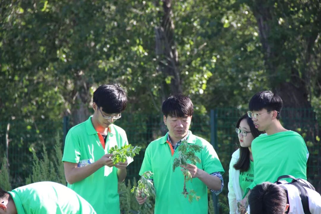 在中药材学院百草园采摘艾蒿的过程中,秦小冬老师从形态特征上为党员同志介绍了鉴别艾蒿与其他蒿类植物的方法,同时介绍了在端午佳节中艾蒿所代表的意义和有关习俗。