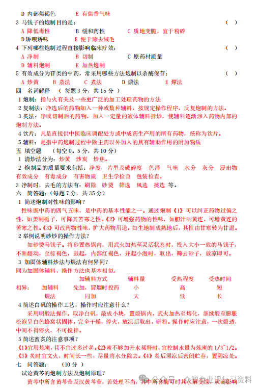 大家好,今天给大家分享的是《中药炮制学》的复习资料,主要包括重点笔记归纳+知识点总结+名词解释及简答题大全+期末考试题库及答案等,还没有备考的宝子千万不要错过哦,下面一起来看看具体的内容吧。