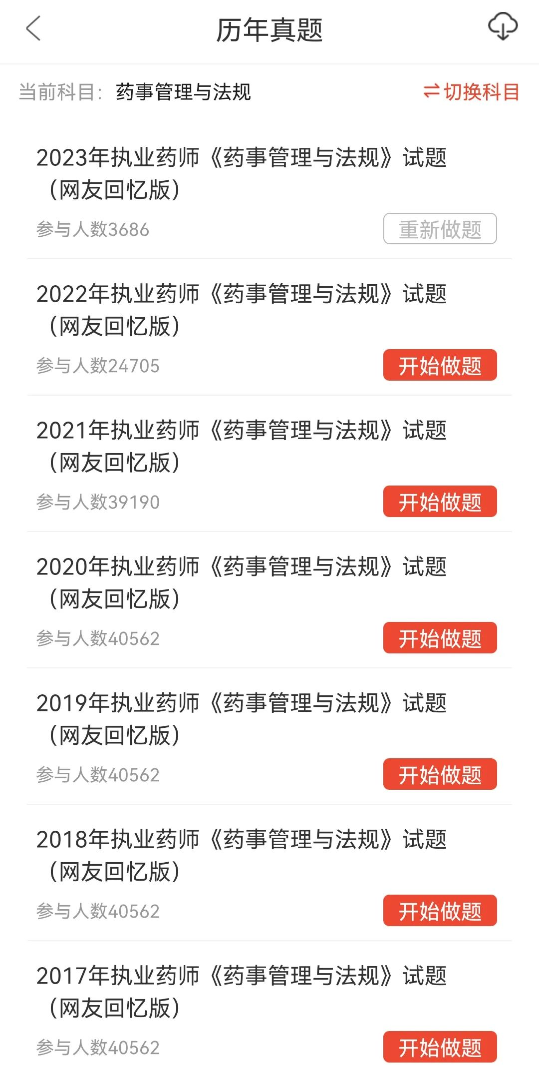 目前题库为24执业药师题库