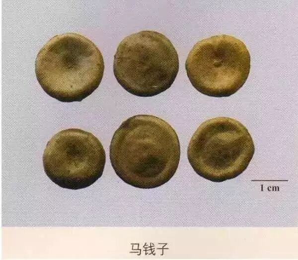 马钱子:表面自中间向四周呈辐射状排列,底面中心有突起的圆点状种脐。