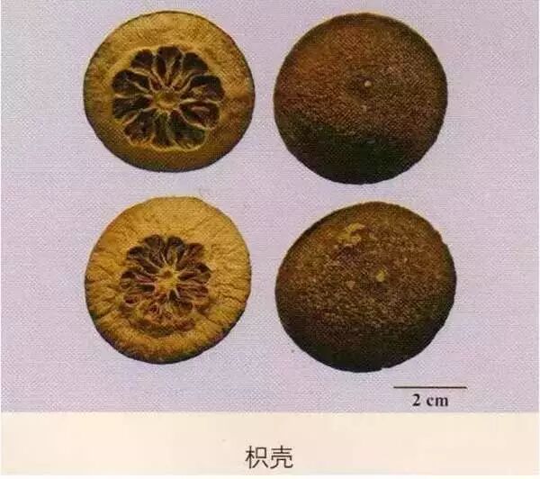 枳壳:呈半球形,外果皮有颗粒状突起。