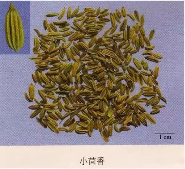 小茴香:背面有纵棱5条,横切面略呈五边形。