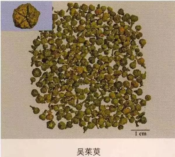 吴茱萸:呈球形或略呈五角状扁球形