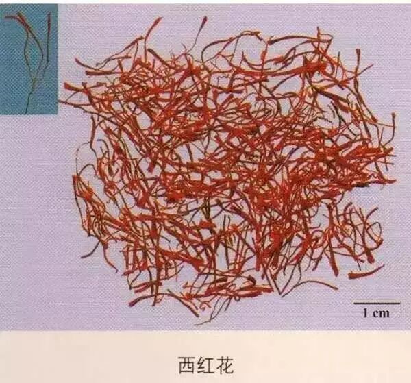 西红花:取本品浸水中,可见橙黄色成直线下降,并逐渐扩散,水杯染成黄色,无沉淀。柱头呈喇叭状,有短缝;在短时间内,用针拨之不破碎。