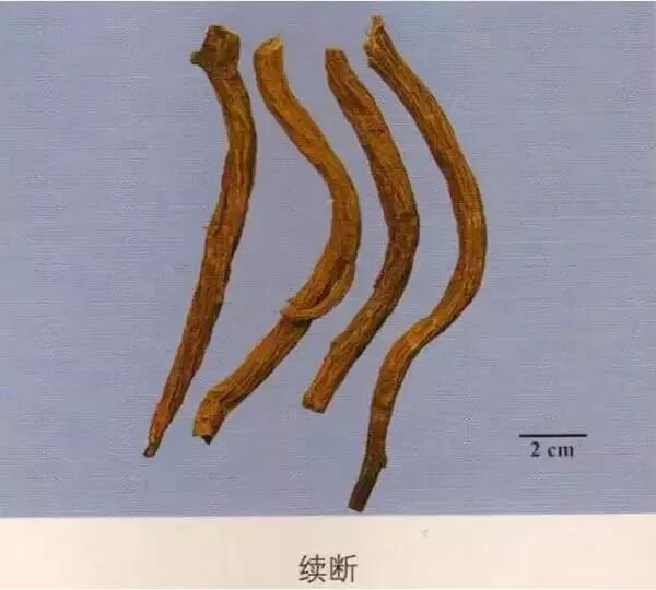 杜仲:断面有细密、银白色、富弹性的橡胶丝相连。