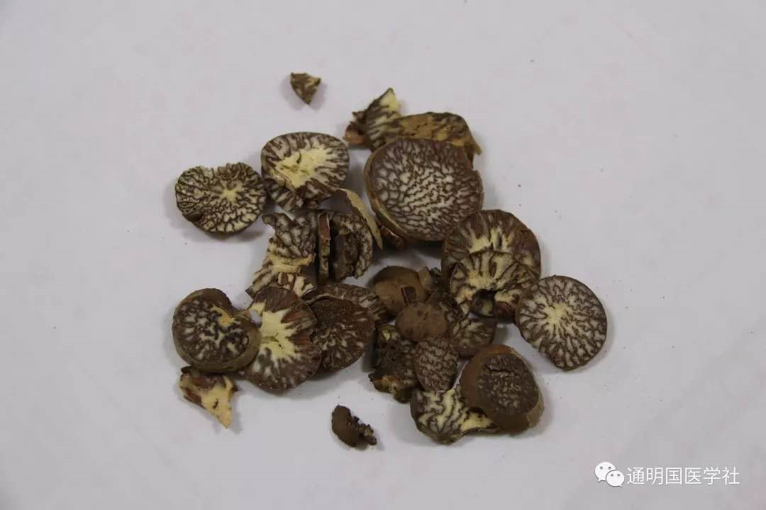 这个图片花纹看起来像槟榔,实际上升麻很蓬松,没有槟榔那么硬