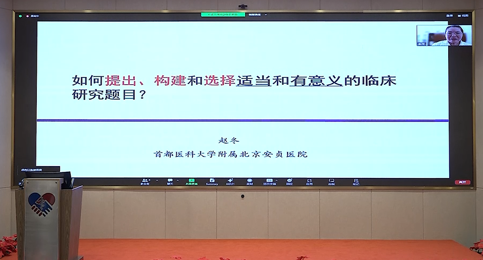 接下来,赵冬教授首先作了《如何提出、构建和选择适当和有意义的临床研究题目》的分享。赵冬教授点明提高科研能力首先是提出有价值的临床研究问题的基本能力,应在明确了解临床研究的基本范畴和分类的前提上,结合临床诊治实践的需求,提升提出、凝练、转化和构建具体的临床研究问题的能力。此外,有必要在充分复习既往及最新前沿文献的基础上,系统性了解研究理论和他人的研究进展,并结合FINER标准进行评价,提升判断临床研究问题重要性、合理性的能力。