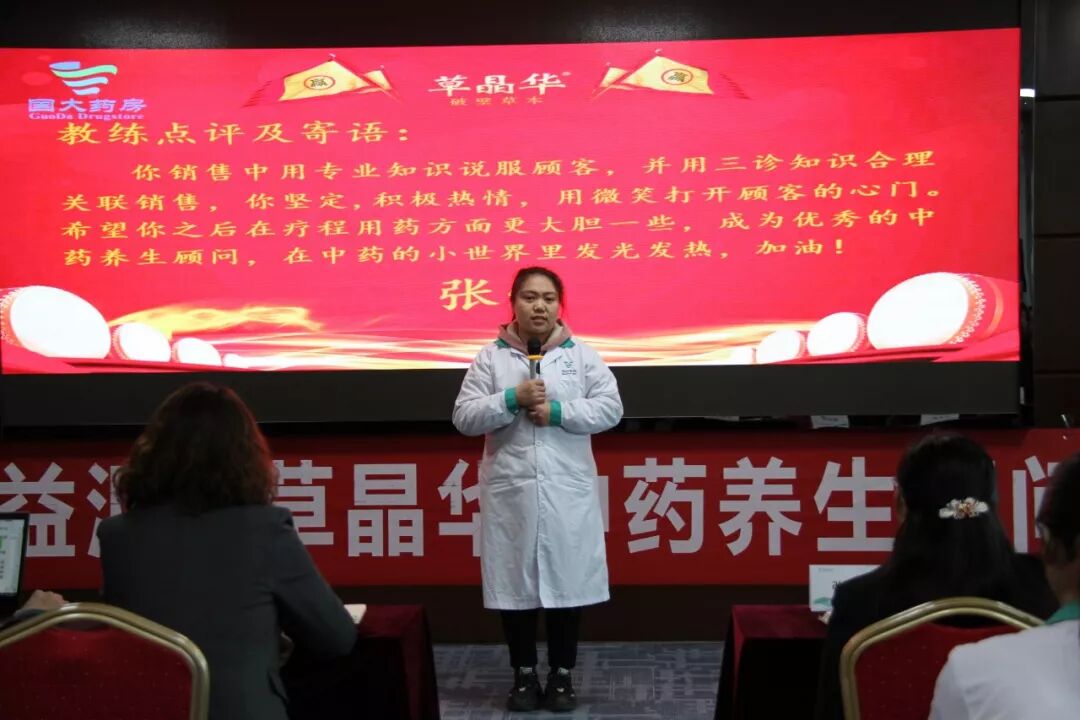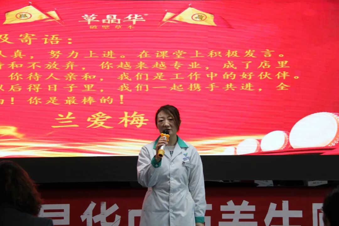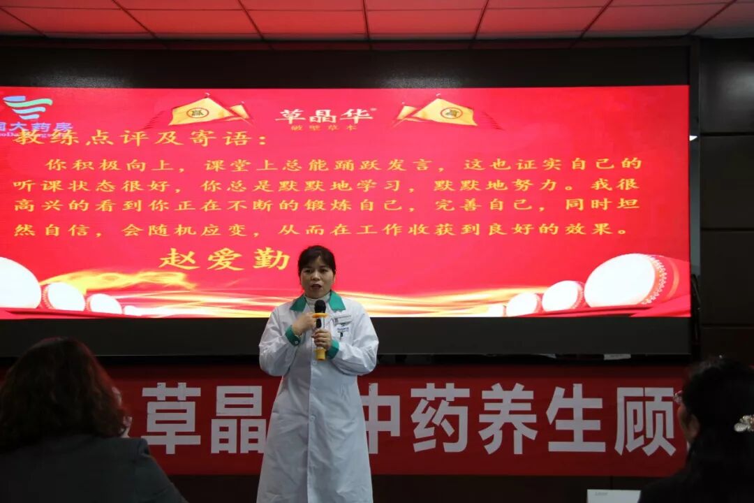 在为期三个月的培训带教中,涌现出一批优秀的学员,在总结会上她们积极、乐观、自信地分享了各自在门店中的服务案例:自己如何通过所学到的中医药知识,手诊、面诊、舌诊等诊断技能,给顾客分析病情,指导顾客合理用药,从专业角度帮顾客解决自身的健康问题,并教会顾客日常中药养生与调理的方法。每当有顾客回到店里对他们的专业服务给予肯定的时候,她们由衷感到欣慰和骄傲。
