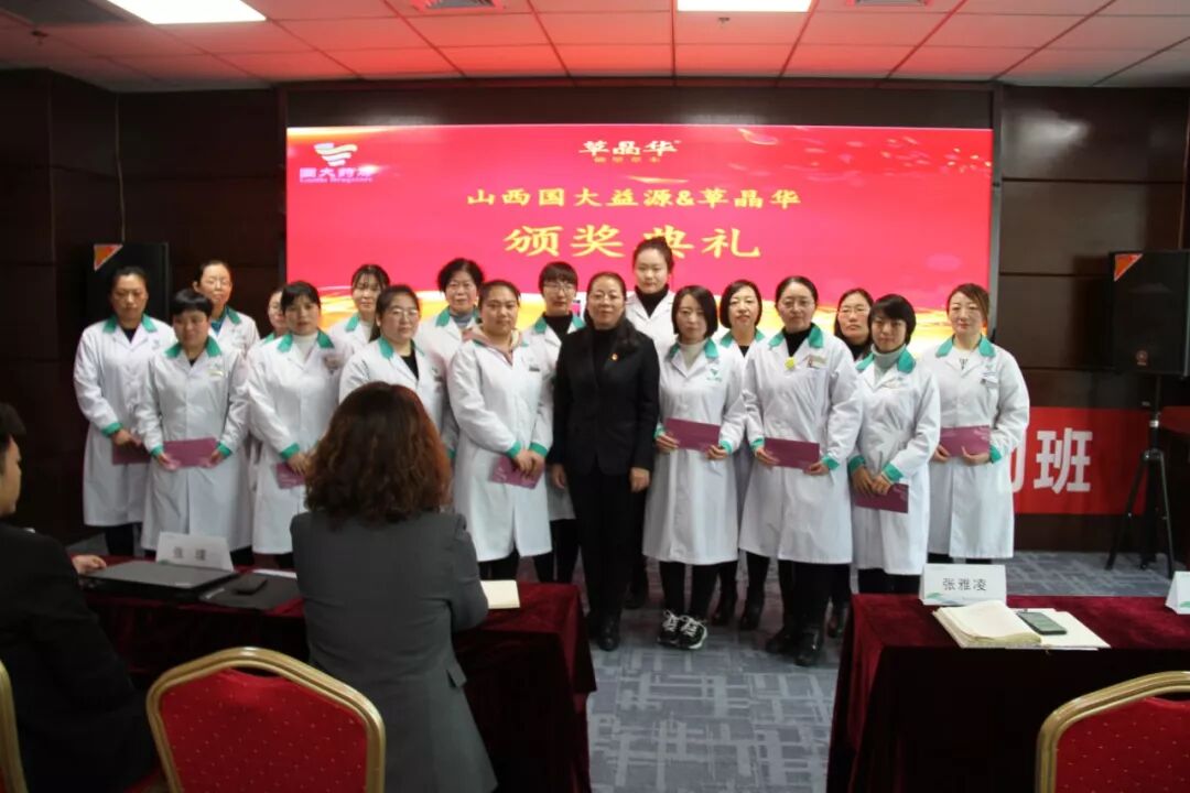 本届养生顾问班总结会,公司为全体学员授予国大中药养生顾问胸章。三期培训合格的学员,给予培训奖励;对于三期培训合格和服务达标的学员,授予国大益源中药养生顾问证书,纳入公司人才库。