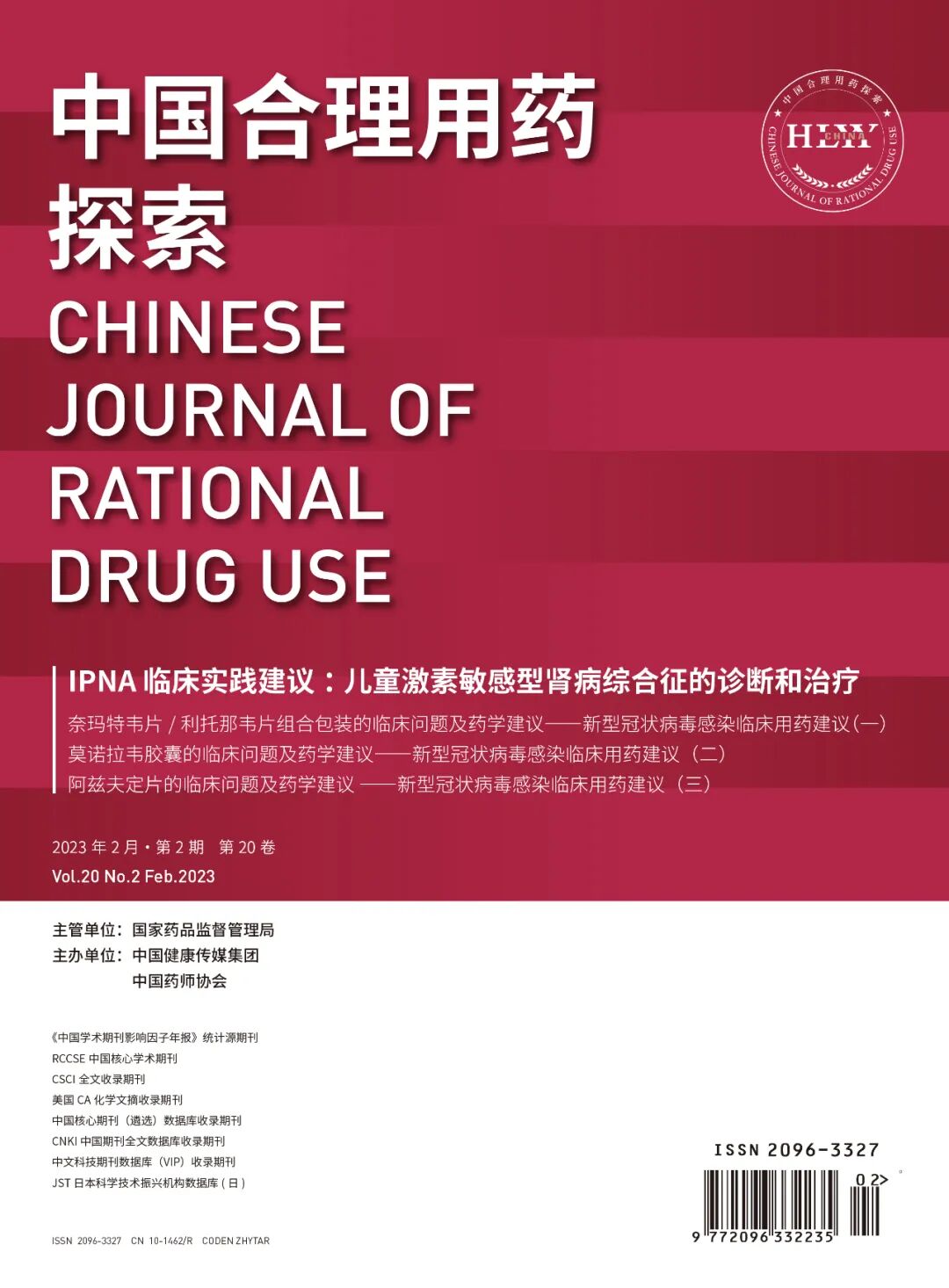 《中国合理用药探索》杂志(原《中国执业药师》)创刊于2003年,是国家药品监督管理局主管、中国健康传媒集团和中国药师协会主办的医药学专业学术期刊。本刊为RCCSE中国核心学术期刊,收录于中国核心期刊(遴选)数据库、CNKI中国期刊全文数据库、美国《化学文摘》CA(2014)、中文科技期刊数据库(VIP)、JST日本科学技术振兴机构数据库(日)、美国《乌利希期刊指南》(UPD)。