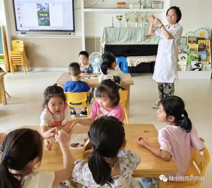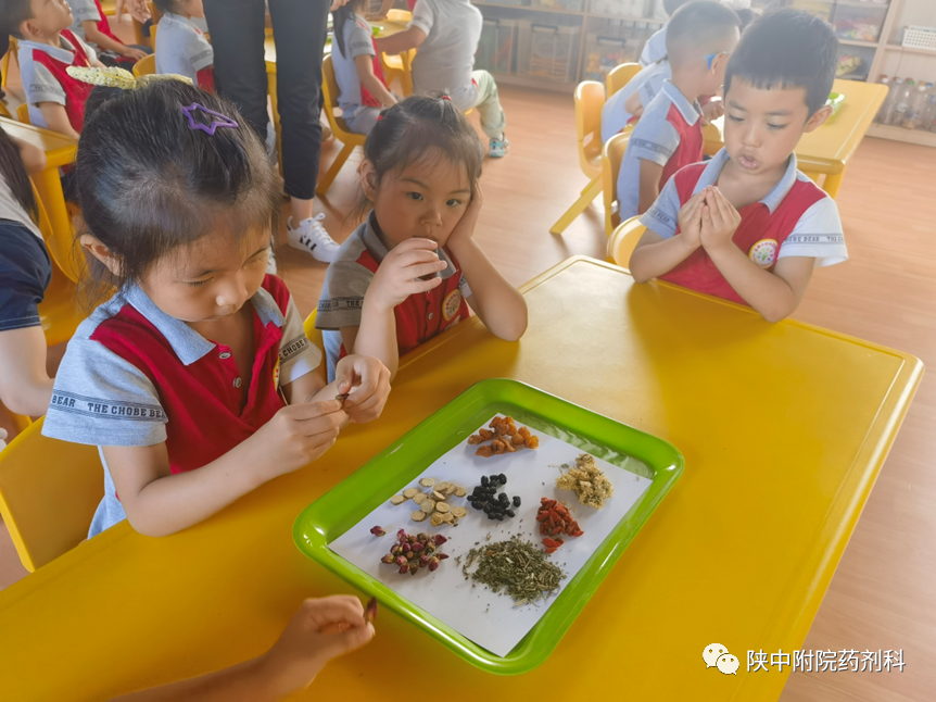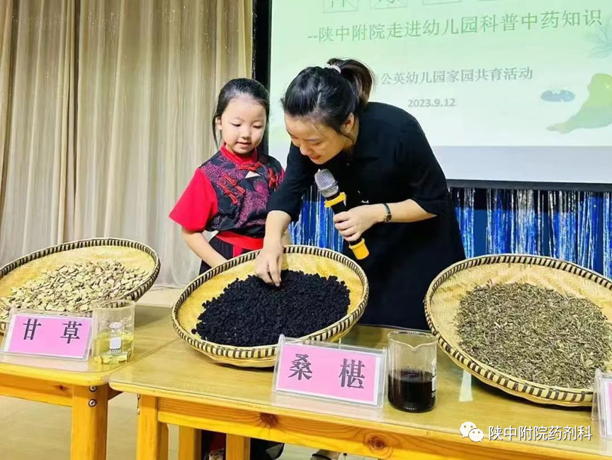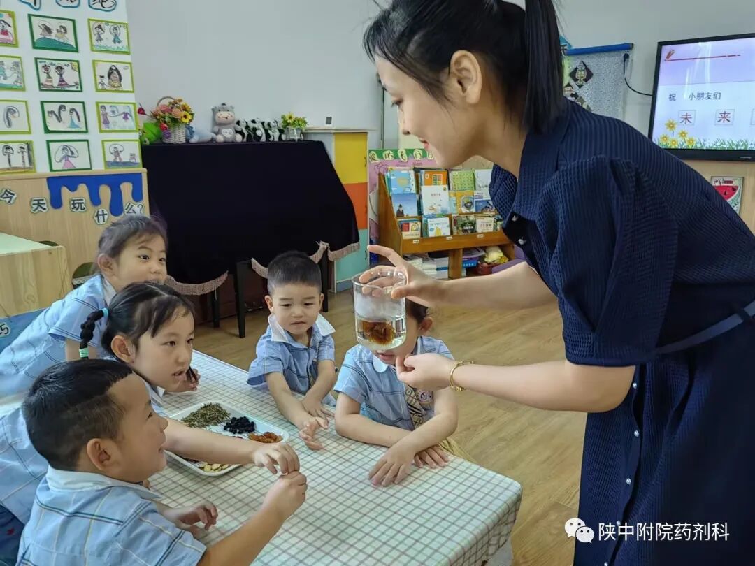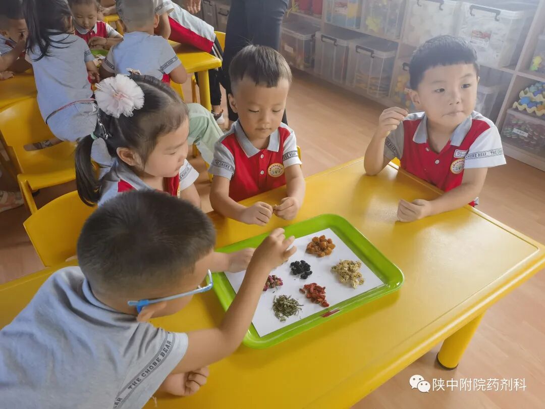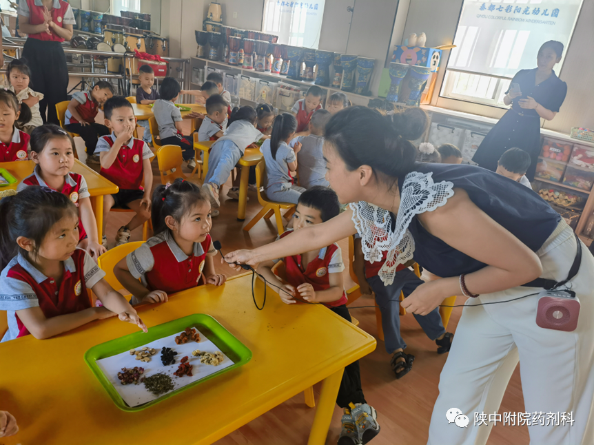在第十五届药师节来临之际,为了积极传播中药文化,讲好中药故事,普及中药知识。我科围绕中药文化传承主题,精心挑选中草药作为科普素材,开展合理用药与科普宣传系列活动——中药科普知识进校园,走进西安未央区学府蒲公英幼儿园、陕西科技大学强华幼儿园、咸阳实验幼儿园、咸阳秦都七彩阳光幼儿园,为孩子们开启了中药知识的邂逅之路。