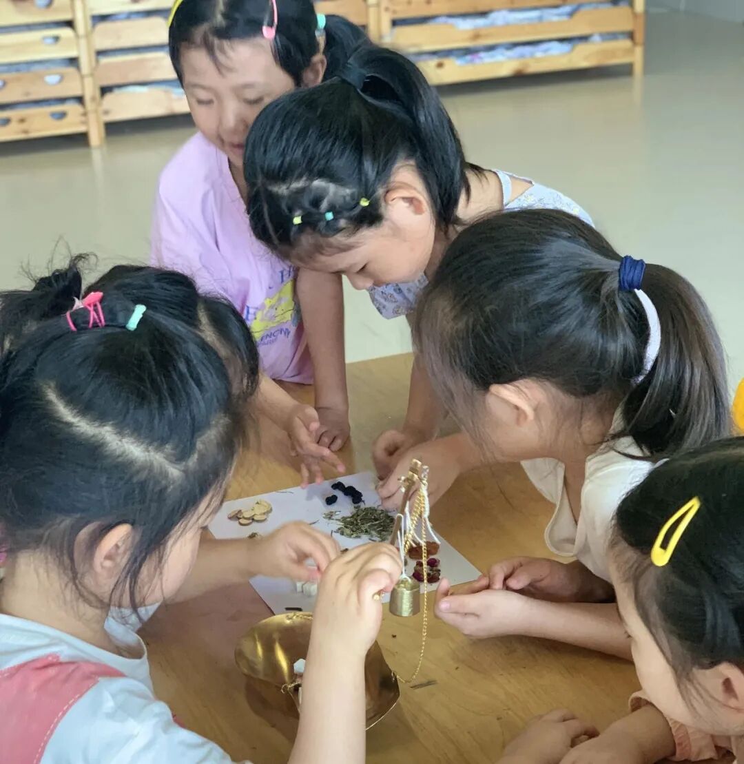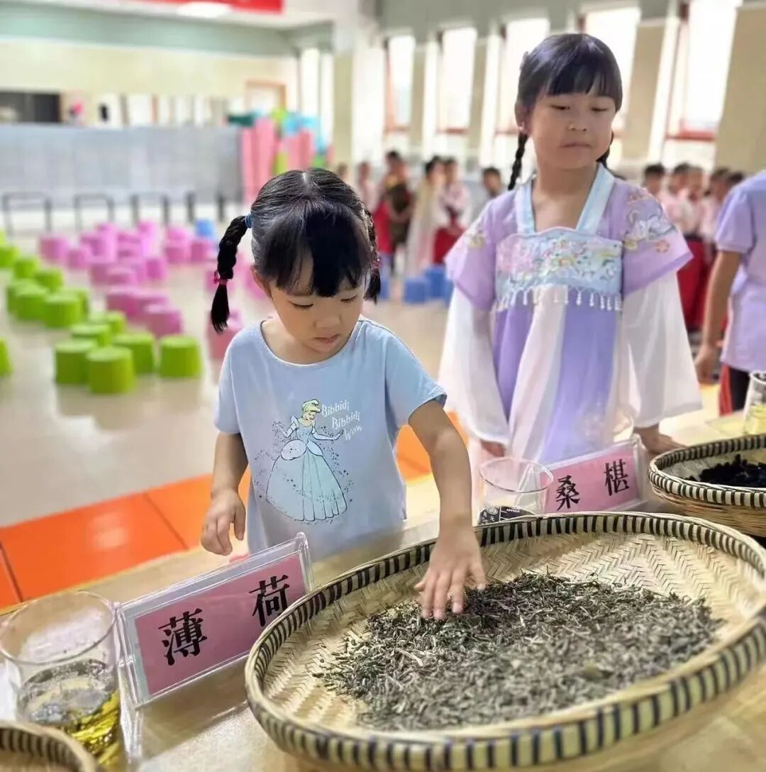 孩子们通过借助自己的眼睛、小手、鼻子、嘴巴等感觉器官,体会薄荷、枸杞、菊花、玫瑰花、甘草等不同中药在视觉、触觉、嗅觉、味觉等不同维度上的差异,进一步加深了对中药的理解。课堂中还向孩子们展示中药胖大海加水浸泡后的样子,让孩子们更加直观地感受到不同状态下的中药。
