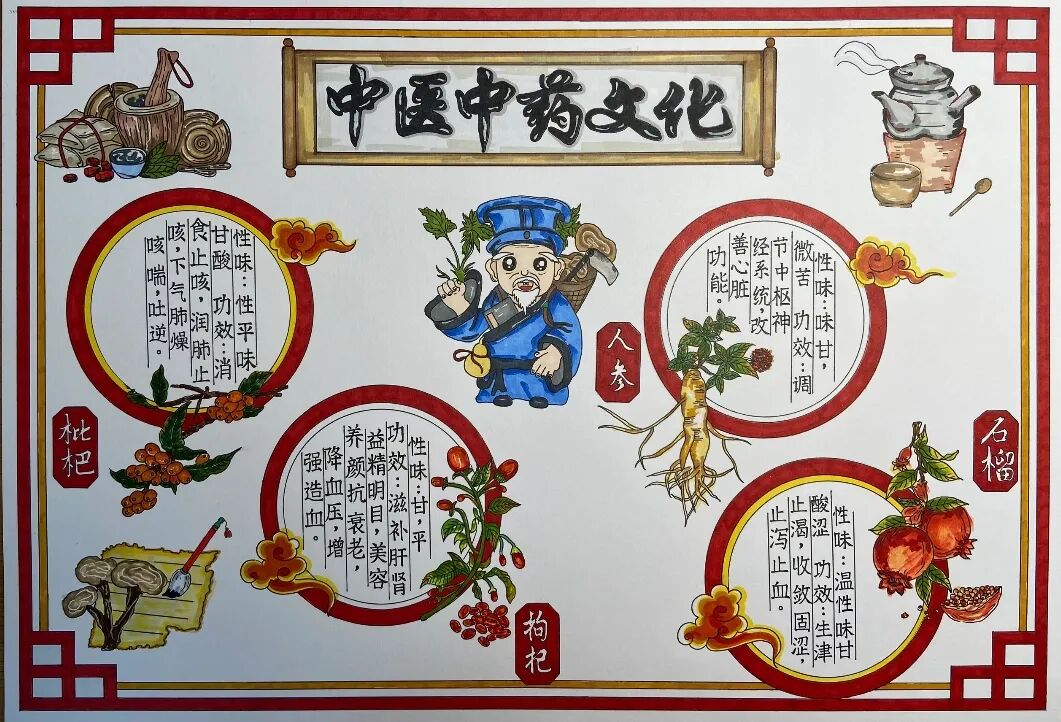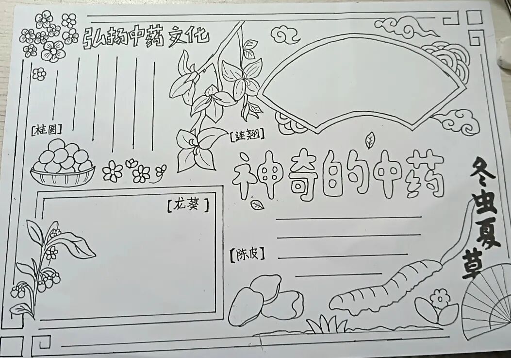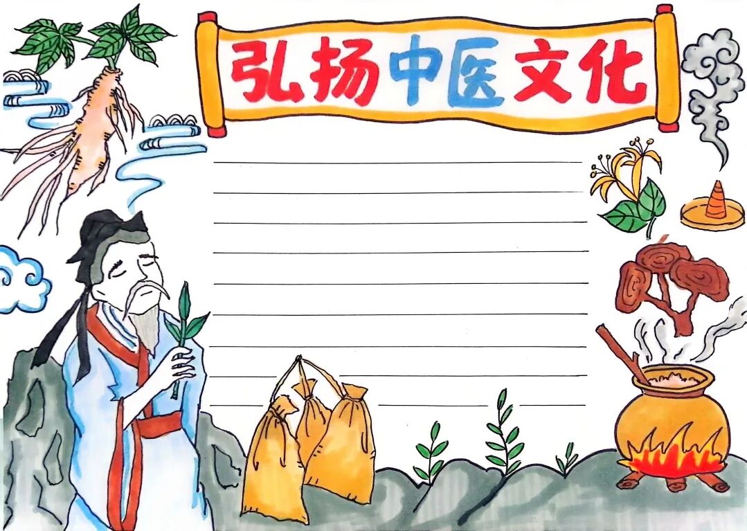 接下来,进行构思。手抄报的内容应涵盖中医药的基础知识、历史发展、名医名方、中医养生等方面。在构思时,可以引导孩子们思考如何将这些内容与美术创作相结合,比如通过绘制中药材的插画、设计中医养生的小贴士、编写中医药小故事等方式,使手抄报既具有教育性,又富有艺术感。