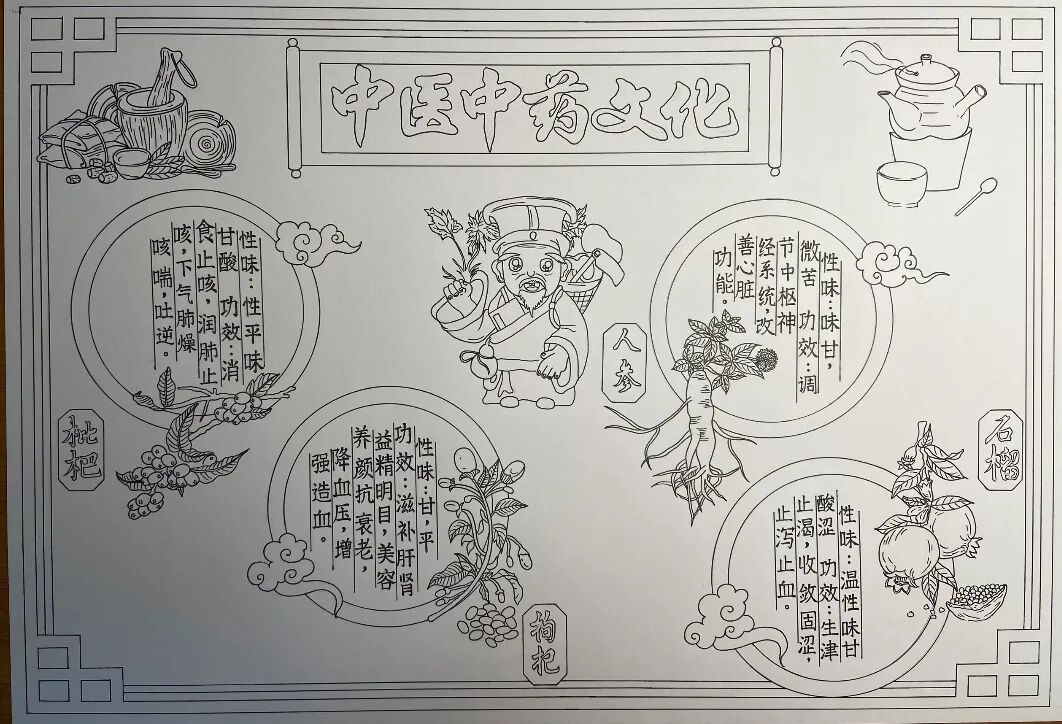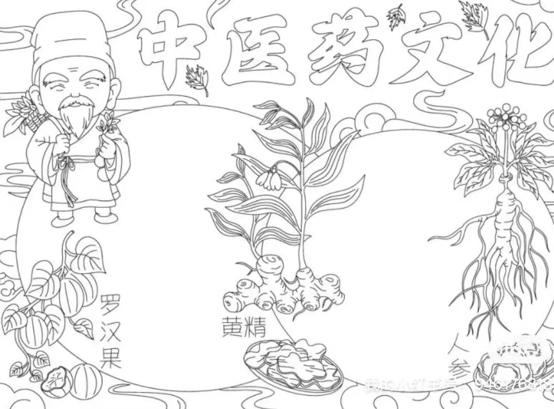 弘扬中医中药手抄报线稿和色稿#传承中医药文化