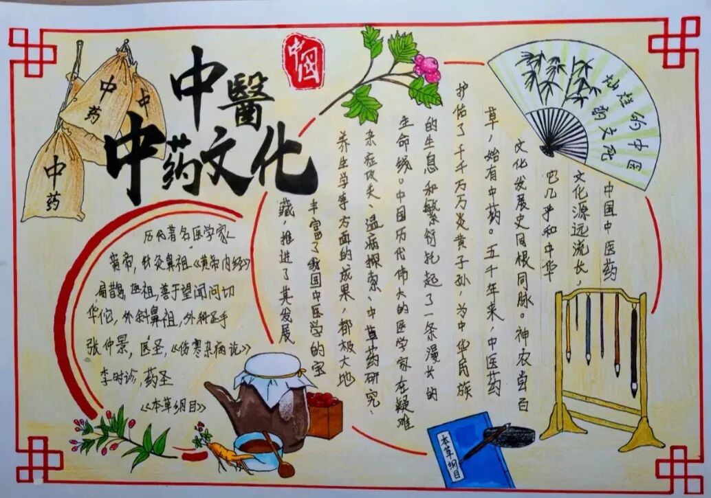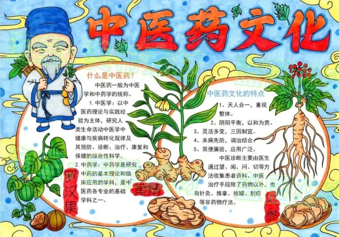 在少儿美术教育中,将传统文化与艺术创作相结合,不仅能够激发孩子们对美的追求,还能帮助他们更好地理解和传承中华优秀传统文化。中医药文化作为中华文化的重要组成部分,蕴含着丰富的哲学思想和智慧,通过手抄报这一形式,可以让孩子们在动手实践中感受中医药的魅力,从而培养他们对传统文化的热爱和尊重。以下是一份详细的指导方案,旨在帮助孩子们创作一幅既美观又富有教育意义的中医药文化手抄报。