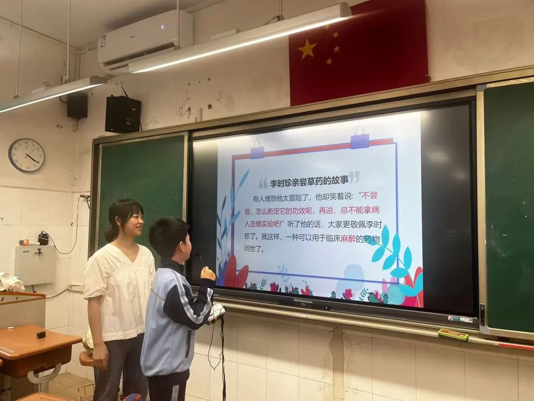 许医生向同学们介绍了李时珍以及他亲尝草药的故事:李时珍为了弄清楚每一种草药的特性及药效,不惜冒着中毒的风险,用自己来做实验,亲自服用各种草药,从而编写出闻名全世界的旷世巨著《本草纲目》。这种精神十分令人敬佩,为世界中医药事业的发展做出了无可比拟的巨大贡献。