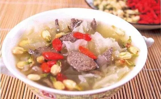②置蒸笼中蒸1个小时,待木耳熟透即成。吃银耳、黑木耳,喝汤,每日2次。