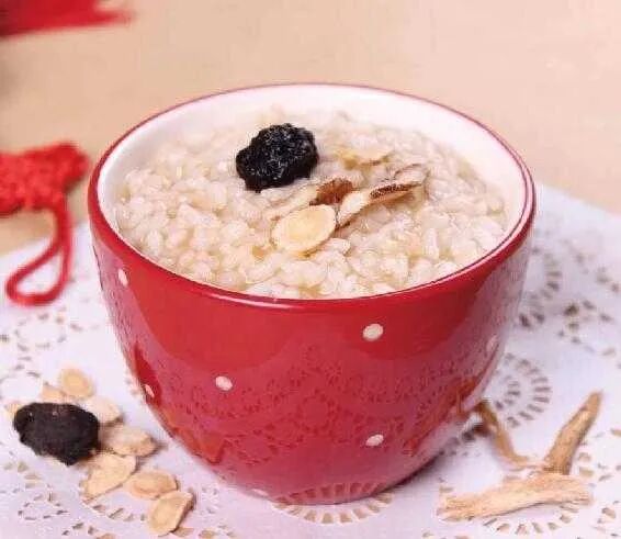 ③将黄芪、红枣和糯米同放入砂锅中,加适量水煮沸,转小火煨至糯米熟软,加入羊肉丝、盐、胡椒粉略煮即可。