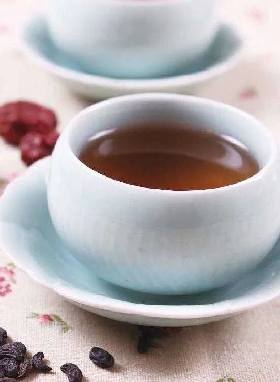 茶叶15克,五味子20克,人参10克,桂圆肉30克。将五味子、人参捣烂,桂圆肉切细丝,同茶叶拌匀,用沸水冲泡5分钟,随意饮用。