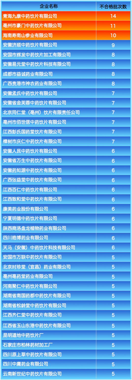 e查到底发现,在2017年国家食品药品监督管理总局共公布了22份不合格中药饮片名单,共涉及362家企业的793批次产品。其中168家企业是多批次产品上黑榜。(以下为不合格批次数≥5次名单↓↓↓)