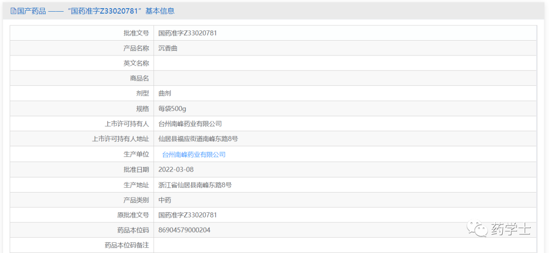 由此可知,中药饮片的批准文号管理仍然是进行时。那么,上述沉香曲算什么呢?在国家药监局的官网上,沉香曲的信息如下: