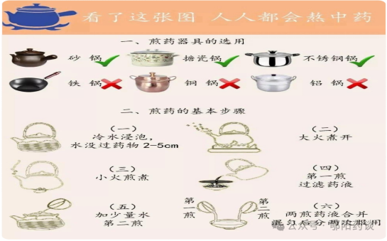 砂锅、搪瓷锅、不锈钢锅均可,严禁用铁锅、铜锅和铝锅。