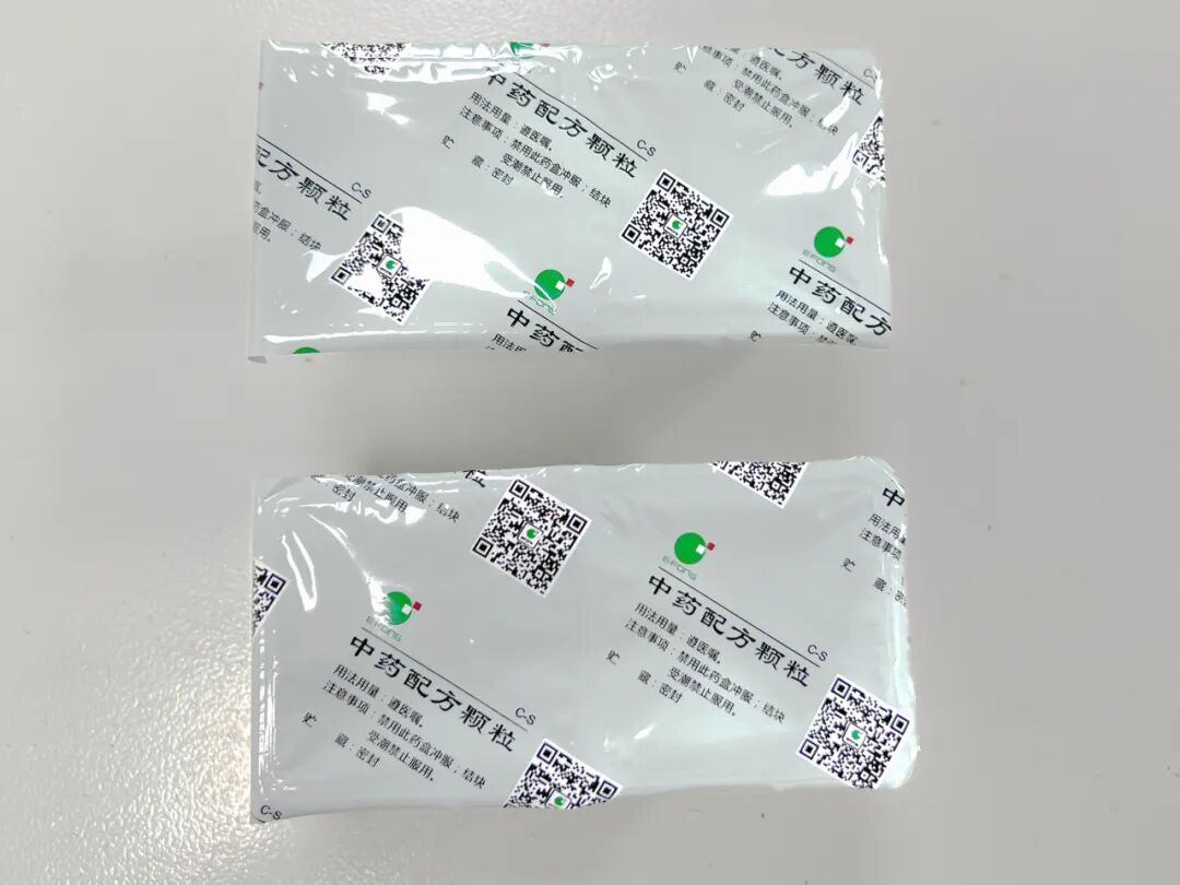 处方中所有中药配方颗粒通过专用调配机自动转换用量、识别、称重、调配、混合,封装后即成了盒装的成品,按标签上的使用方法即可(如下图)