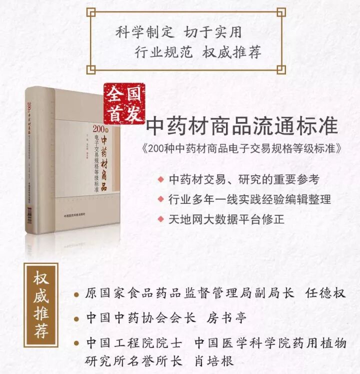 在当今互联网+ 中药材时代,一部助力中药材电子商务信息更透明、交易更快捷的案头必备工具书——《200种中药材商品电子交易规格等级标准》隆重登场!