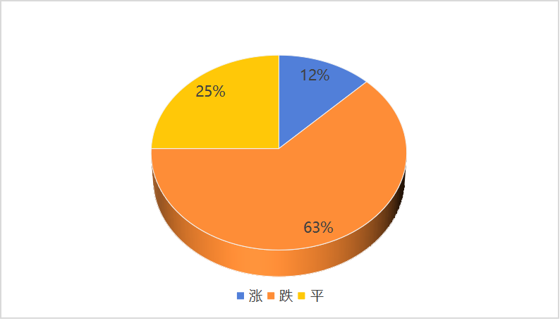 根及根茎类24个品规中,价格上涨的品规占12%;跌价品规占63%;价格持平的品规占25%。
