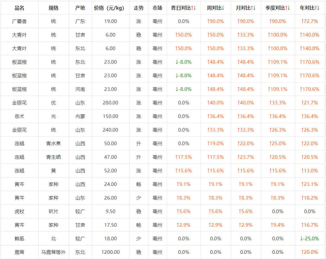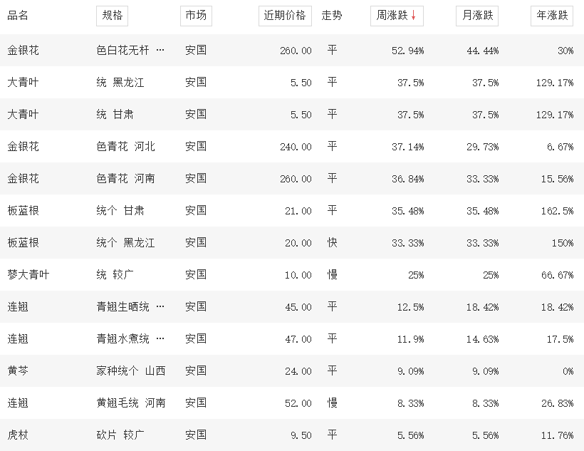 【最新】一周内药材价格疯涨榜(数据来自药通网、中药材天地网)