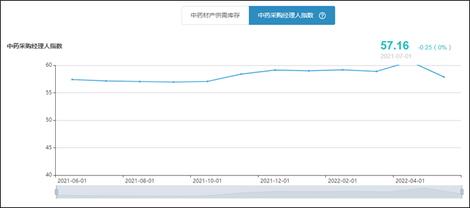 到了2022年5月,中药消费需求以及市场扩张情况开始放缓,采购经理人指数从60.69点回落至57.16点,回落幅度达到5.82%。中药材生产和需求开始降温,企业采购意愿减弱成为了这一时期最显著的特征。