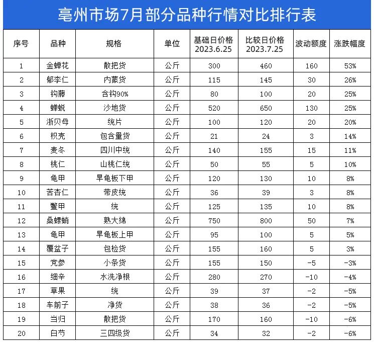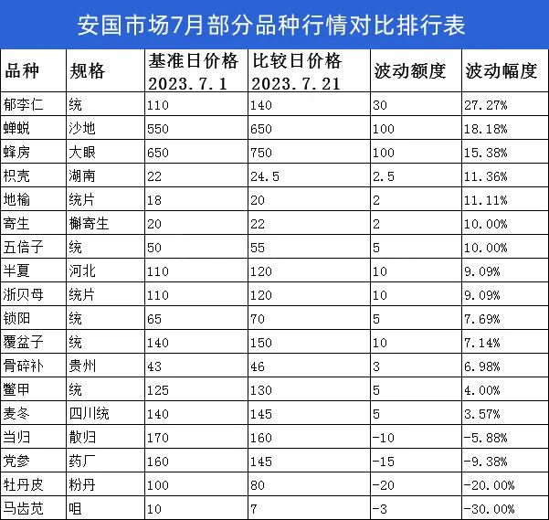 为了更好的了解刚过去的七月行情,我们不妨看下亳州市场和安国市场七月的行情走势。