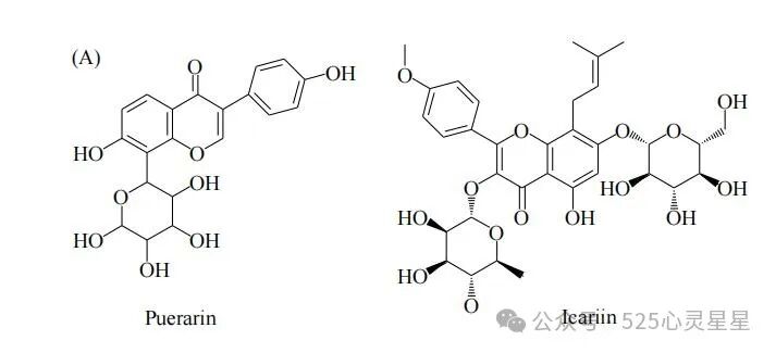 (A)Puerarin:葛根素;Icariin:淫羊藿苷