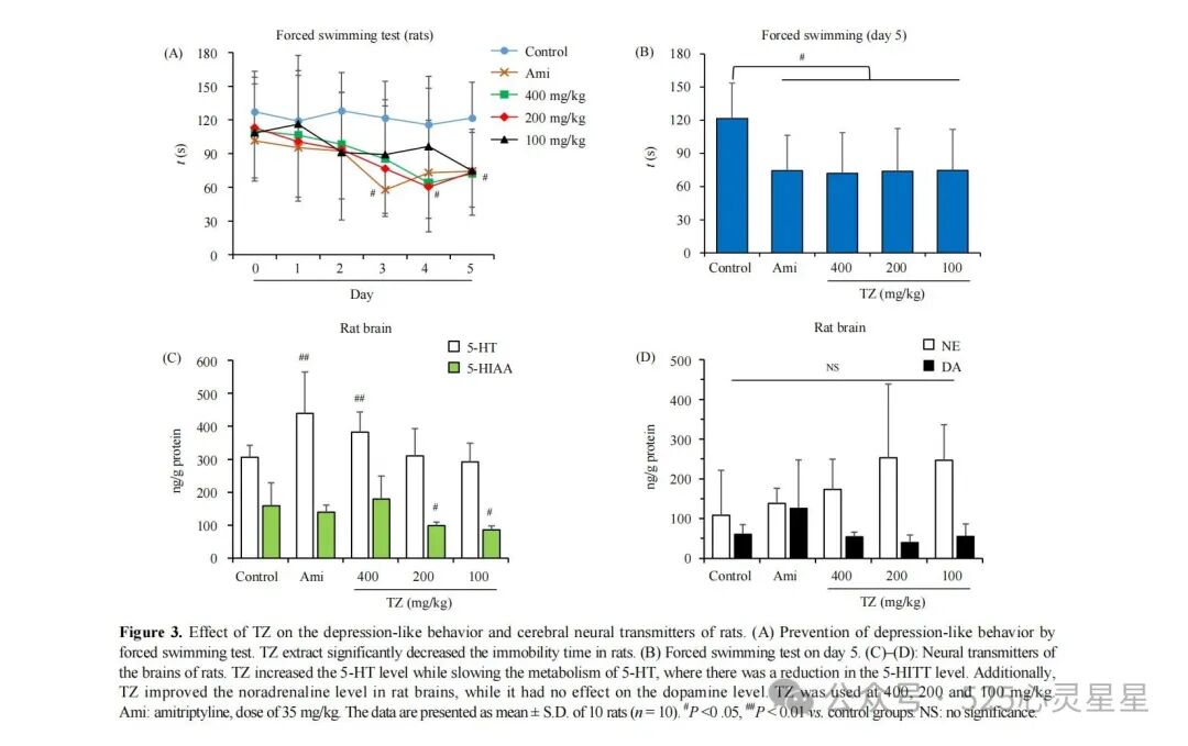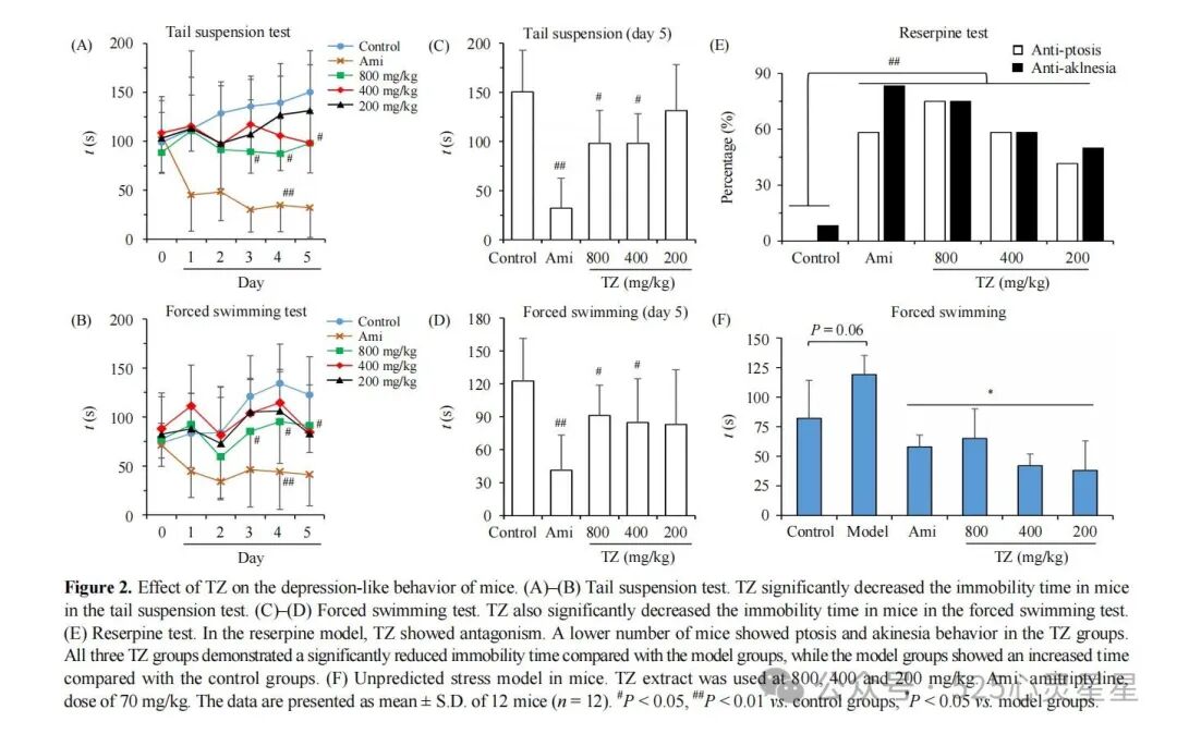 由清华大学生命科学学院团队自主研发的中药提取物复合制剂太子神悦胶囊(英文缩写为 TZ,现已上市,名为参葛补肾胶囊,新疆华春生物药业股份有限公司拥有独立知识产权)初步实验发现,其在临床实验上表现出一定抗抑郁作用,但其抗抑郁作用的分子机制尚不明确,有待于深入系统的探索。