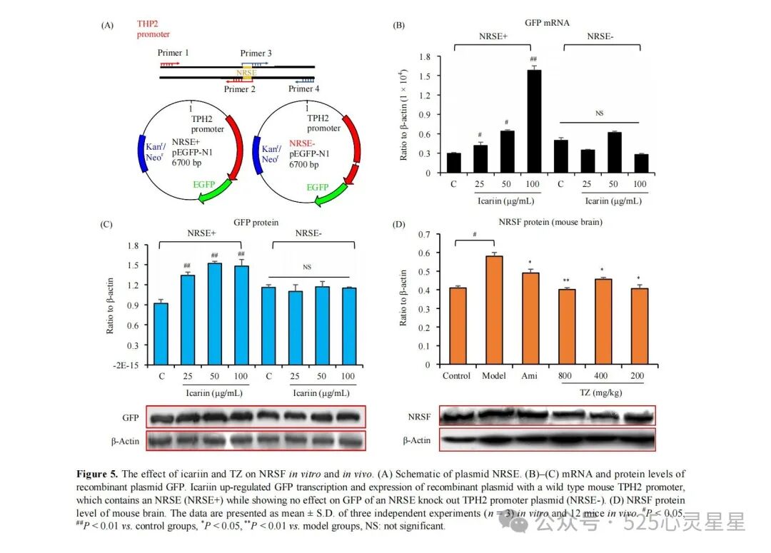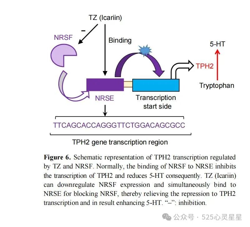 5.TZ中的淫羊藿苷可以直接作用于NRSE,阻断与NRSF的结合,从而解除NRSF对TPH2基因转录的抑制