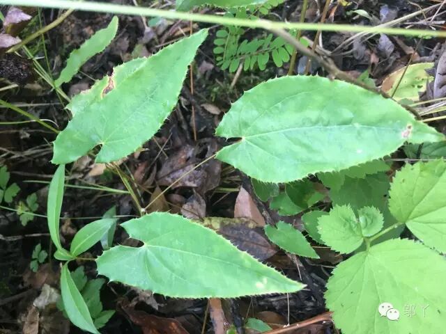 这里漫山遍野都能寻到这种草,老伯给我示范:连根刨出一颗淫羊藿,抖一下根上的泥巴,然后把根放在嘴里嚼。