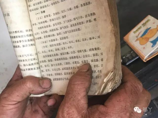 其中对他帮助最大的就是白求恩时期的那本,那本书有说按摩方法,有说方剂和对应草药方,还有草药和西药的配合用法。书翻的很烂,里面折了很多角,都是老何认为的重点内容。