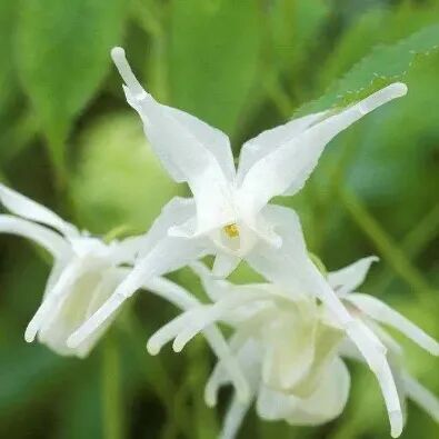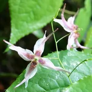 朝鲜淫羊藿,二回三出复叶;小叶较大,长4~10cm,宽3.5~7cm,先端长尖。叶片较薄。