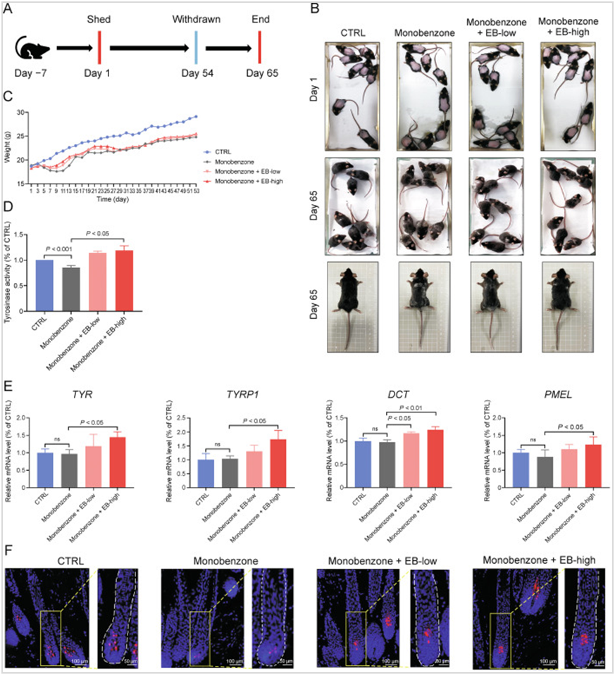 7、EB改善小鼠单苯酮诱导的色素脱失