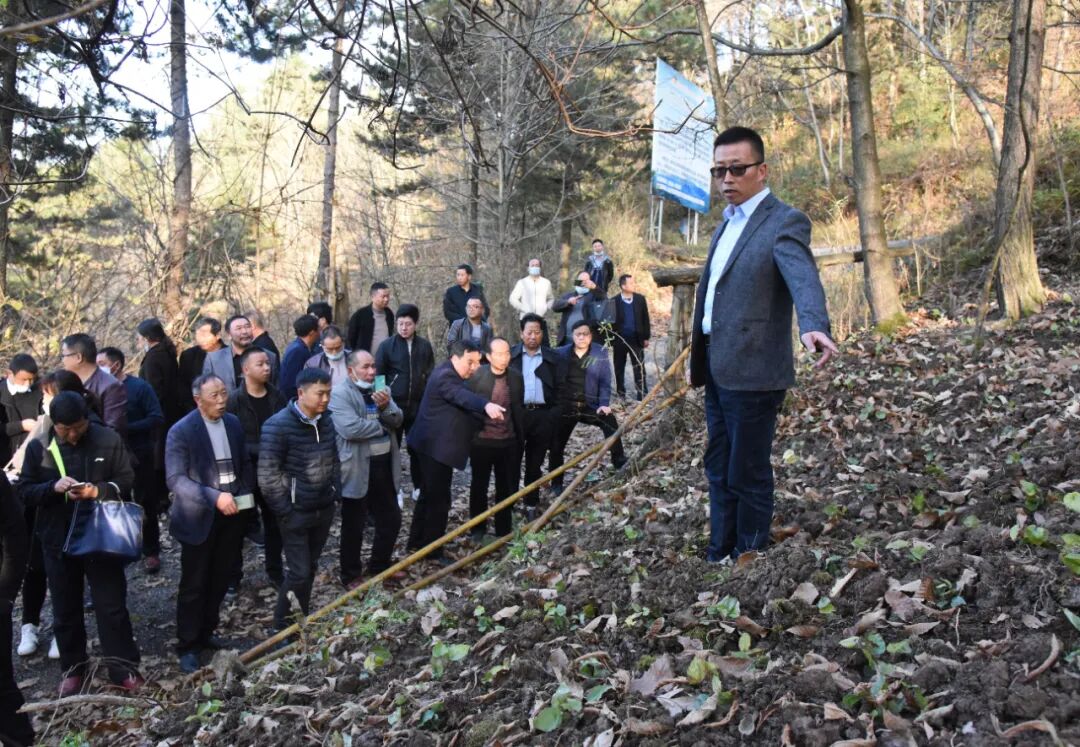全体参训人员到县淫羊藿研究所谢家沟村淫羊藿标准化种植基地、思青科技有限责任公司鹰嘴崖中药材生态种植科普示范基地现场开展观摩教学。