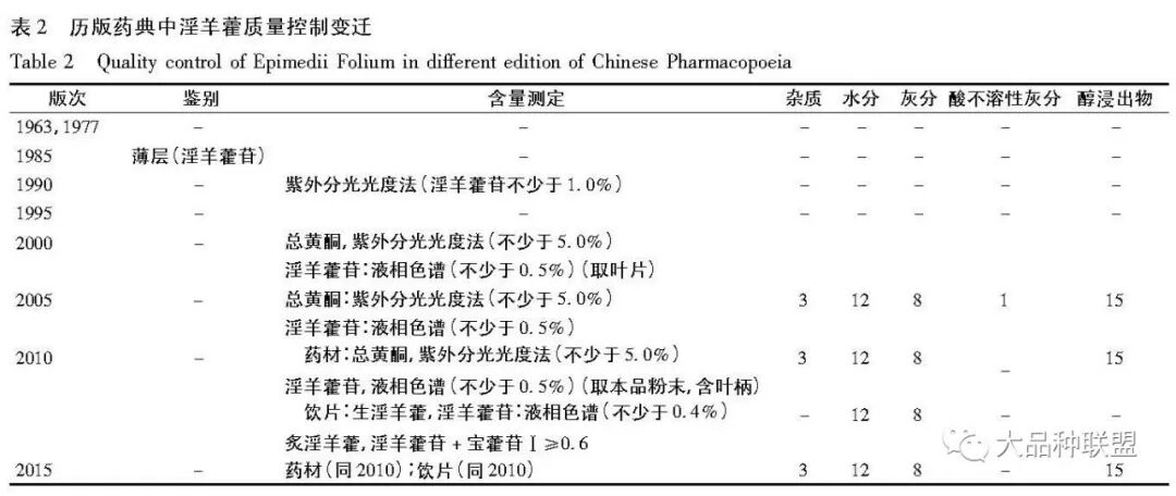 淫羊藿历版药典标准整理