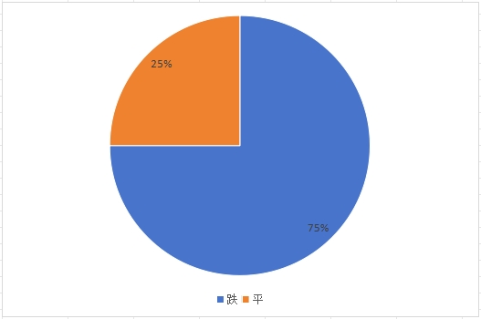 花类4(款冬花、玫瑰花、红花、金银花)个品规中,跌价品规占75%;价格持平的品规占25%。