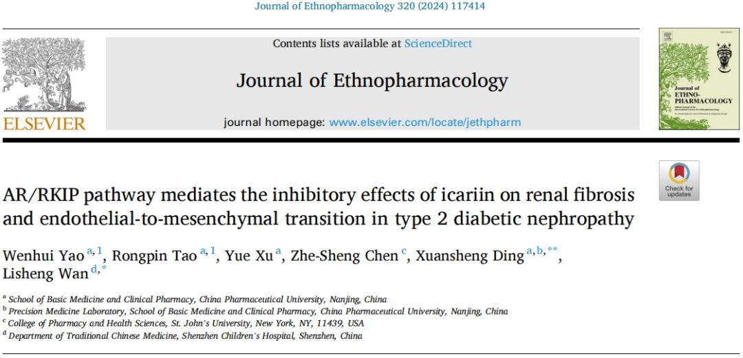 Yao W, Tao R, Xu Y, Chen ZS, Ding X, Wan L. AR/RKIP pathway mediates the inhibitory effects of icariin on renal fibrosis and endothelial-to-mesenchymal transition in type 2 diabetic nephropathy. J Ethnopharmacol. 2024 Feb 10;320:117414. doi: 10.1016/j.jep.2023.117414.