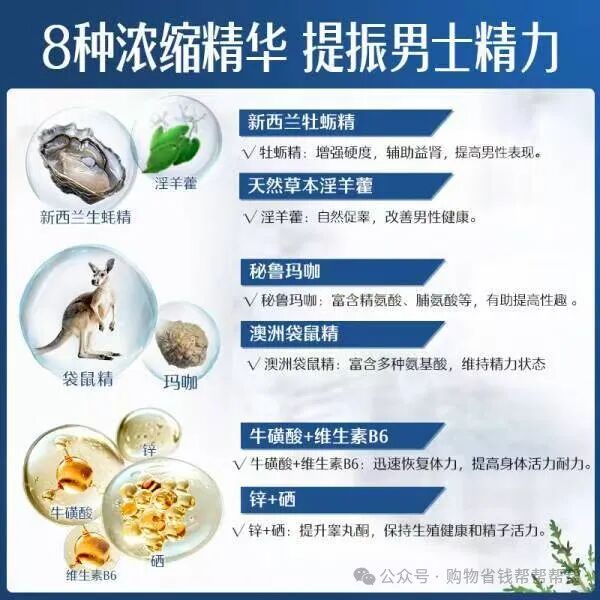 斯维诗雄风片的主要成分包括玛咖、牡蛎精、袋鼠精华和淫羊藿等天然草本提取物。这些成分各自具有独特的保健功效,相互搭配则能够发挥出更大的作用。玛咖被誉为天然荷尔蒙发动机,能够调节人体内分泌系统,提高身体机能;牡蛎精则富含锌、硒等微量元素,对男性生殖系统有很好的滋养作用;袋鼠精华则能够增强体力和耐力,提高身体免疫力;淫羊藿则具有补肾壮阳、强筋健骨的功效。这些成分的完美结合,使得斯维诗雄风片在提升精力、改善性功能、增强体质等方面具有显著的效果。