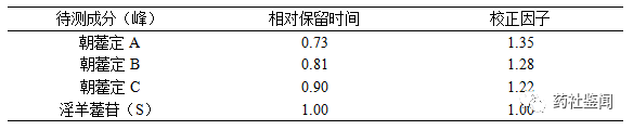 【鉴别】(1)本品叶表面观:淫羊藿 上、下表皮细胞垂周壁深波状弯曲,沿叶脉均有异细胞纵向排列,内含1~多个草酸钙柱晶;下表皮气孔众多,不定式,有时可见非腺毛。箭叶淫羊藿 上、下表皮细胞较小;下表皮气孔较密,具有多数非腺毛脱落形成的疣状突起,有时可见非腺毛。柔毛淫羊藿 下表皮气孔较稀疏,具有多数细长的非腺毛。朝鲜淫羊藿 下表皮气孔和非腺毛均易见。(2)取本品粉末0.5g,加乙醇10ml,温浸30分钟,滤过,滤液蒸干,残渣加乙醇1ml使溶解,作为供试品溶液。另取淫羊藿苷对照品,加甲醇制成每1ml含0.1mg的溶液,作为对照品溶液。照薄层色谱法(通则0502)试验,吸取上述两种溶液各10μl,分别点于同一硅胶H薄层板上,以乙酸乙酯-丁酮-甲酸-水(10︰1︰1︰1)为展开剂,展开,取出,晾干。置紫外光灯(365nm)下检视,供试品色谱中,在与对照品色谱相应的位置上,显相同的暗红色斑点;喷以三氯化铝试液,再置紫外光灯(365nm)下检视,显相同的橙红色荧光斑点。【检查】杂质 不得过3.0%(通则2301)。水分 不得过12.0%(通则0832第二法)。总灰分 不得过8.0%(通则2302)。【浸出物】照醇溶性浸出物测定法(通则2201)项下的冷浸法测定,用稀乙醇作溶剂,不得少于15.0%。【含量测定】总黄酮 精密量取〔含量测定〕总黄酮醇苷项下的供试品溶液0.5ml,置50ml量瓶中,加甲醇至刻度,摇匀,作为供试品溶液。另取淫羊藿苷对照品适量,精密称定,加甲醇制成每1ml含10μg的溶液,作为对照品溶液。分别取供试品溶液和对照品溶液,以相应试剂为空白,照紫外-可见分光光度法(通则0401),在270nm波长处测定吸光度,计算,即得。本品按干燥品计算,叶片含总黄酮以淫羊藿苷(C33H40O15)计,不得少于5.0%。总黄酮醇苷 照高效液相色谱法(通则0512)测定。色谱条件与系统适用性试验 以十八烷基硅烷键合硅胶为填充剂(柱长为250mm,内径为4.6mm);以乙腈为流动相A,水为流动相B,按下表中的规定进行梯度洗脱;柱温为30 ℃;检测波长为270nm。理论板数按淫羊藿苷峰计算应不低于8000。二、中药饮片